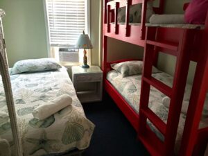 Unit 4 is available for Seasonal rentals only: 1 bedroom, 1 full bath • Sleeps from 4-6 people. Includes 2 sets of bunk beds (twin-sized) and a full-size sofa sleeper. Click to see Unit 4 Listing & Photos.