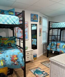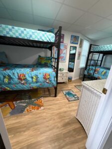 Unit 4: Seasonal room rentals/shared housing: 1 bedroom, 1 full bath • Sleeps from 4-6 people • Includes 2 sets of bunk beds (twin-sized) and a full-size sofa sleeper. Click to see Unit 4